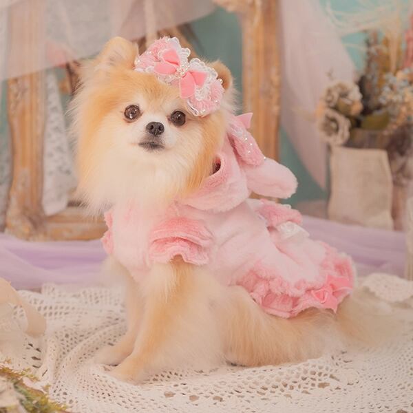 リボンとフリルでラグジュアリーに飾る冬うさぎの装い