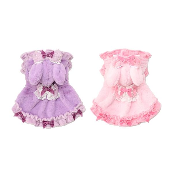 フードのお耳ともふもふのファー素材で冬のうさぎさん気分になれるワンピース。