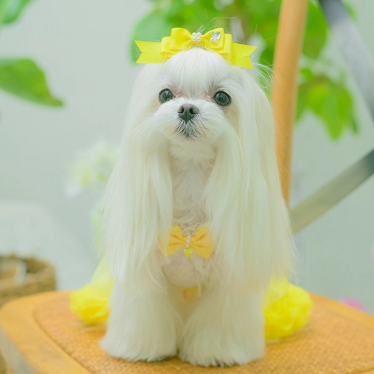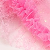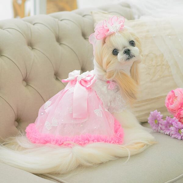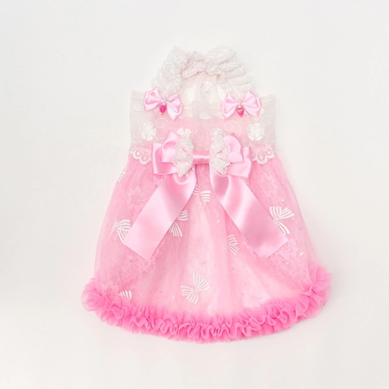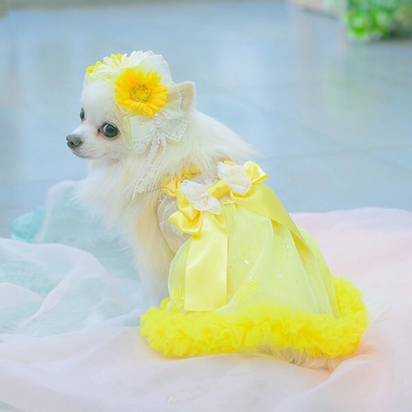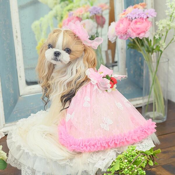 全て透け感ある素材でアレンジしたハイウエストのキャミワンピース。春風になびくスカートフリルは、エレガントな雰囲気で、加えてラメやスパンコールが光に反射して美しくきらめきます。胸元や肩のサテンリボンにはハートやビーズでアクセントをつけています。肩紐は、伸縮性があるので着脱時、動きに柔軟です。ウエストのリボンは、ピンブローチになっており、様々なアレンジをお楽しみいただけます。