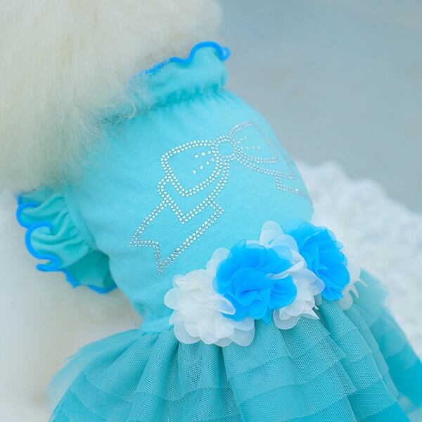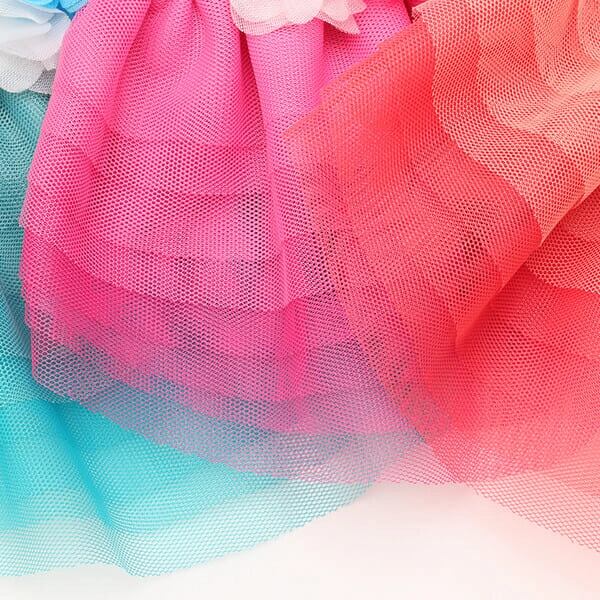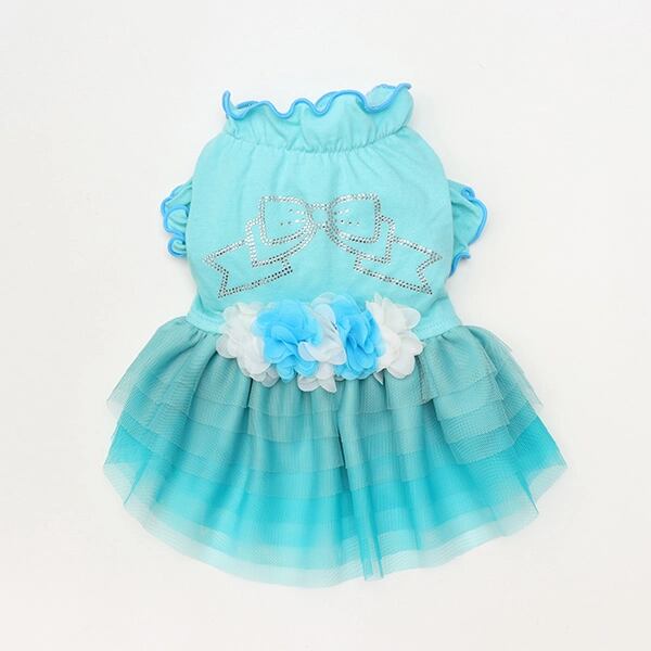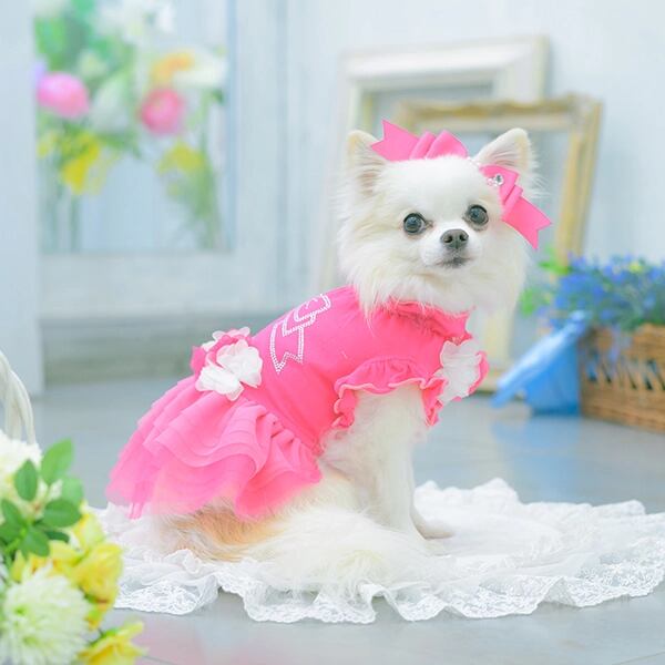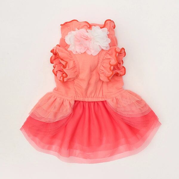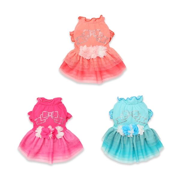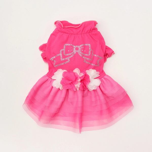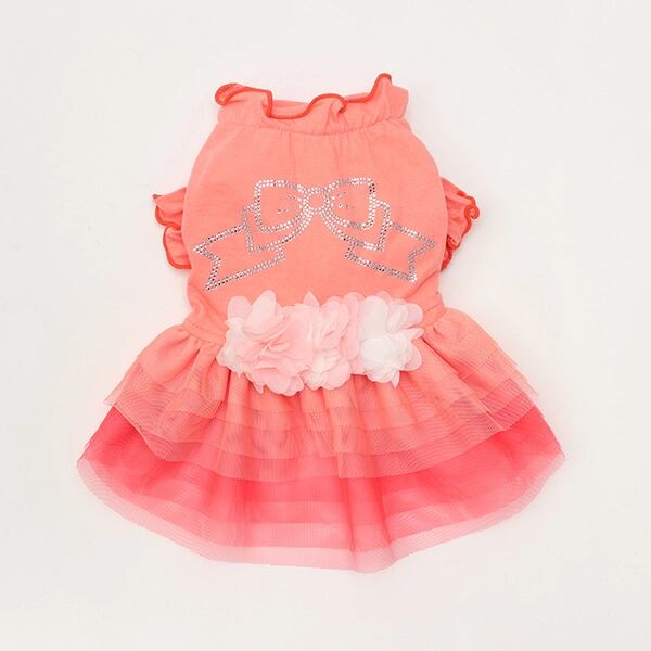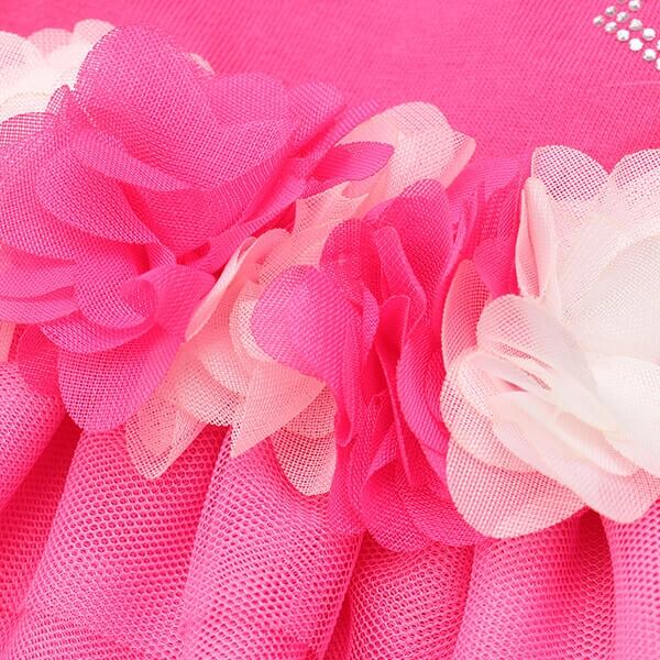 ビビットなトップスとふんわりチュールが印象的なワンピース。姫リボンを形どったラインストーンからは、きらめきが溢れ、透け感とグラデーションが効いたチュールフリルは、表情に奥行と変化をもたらします。ウエストと胸元のシフォンのお花モチーフも、フェミニンなインパクトを添えてくれます。